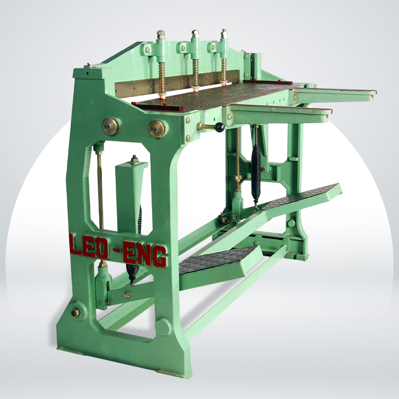 Our Treadle Shearing Machines are designed to quickly and continuously cut M.S. sheets of varying widths. Our equipment ensures precise parallel cutting on both sides with a spring-loaded pressure pad. The blades have four cutting edges, which significantly reduce downtime.